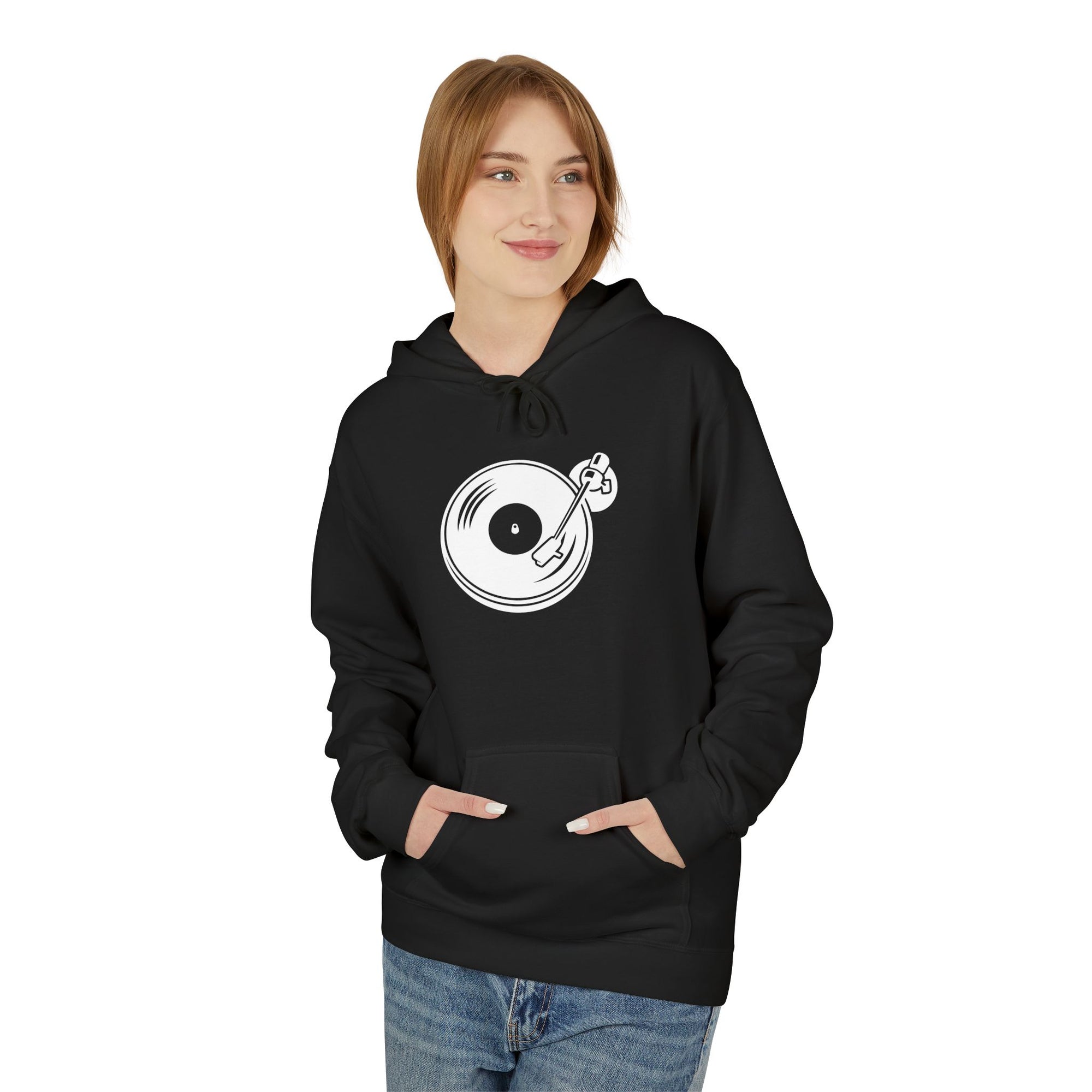 A quiet, vinyl-first hoodie that feels like a late-night listening session. The deep black fabric puts a simple white turntable emblem front and center—subtle enough for everyday wear, recognizable to record collectors and DJs who read between the lines. The brushed fleece interior holds a gentle warmth without weight, so you can sink into slow crate-digging afternoons or keep the studio chill in check during all-night mixes. Dropped shoulders and a relaxed pullover cut layer over tees for an instantly lived-in vibe. Thoughtful production—OEKO-TEX® certified fabric and FLA/WRAP-partnered facilities—means the comfort you pull on has been made with care as well as craft. Reach for this when you want something that listens as much as you do.